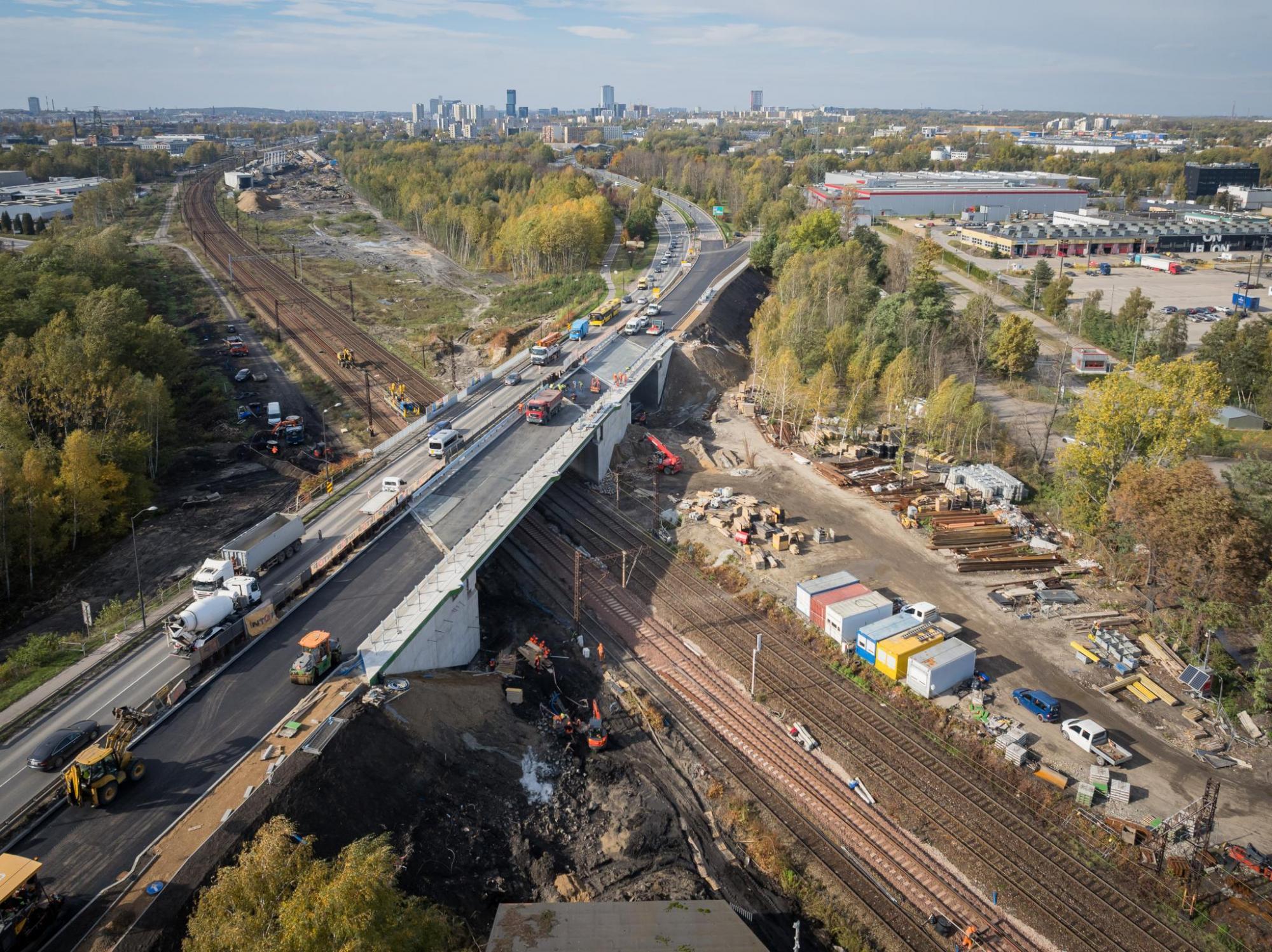 Prowadzimy prace wykończeniowe na nowej części wiaduktu drogowego przy ul. Bagiennej. Na przełomie października i listopada, kierowcy pojadą po nowej jezdni, a wykonawca przystąpi do budowy sąsiedniej części obiektu.