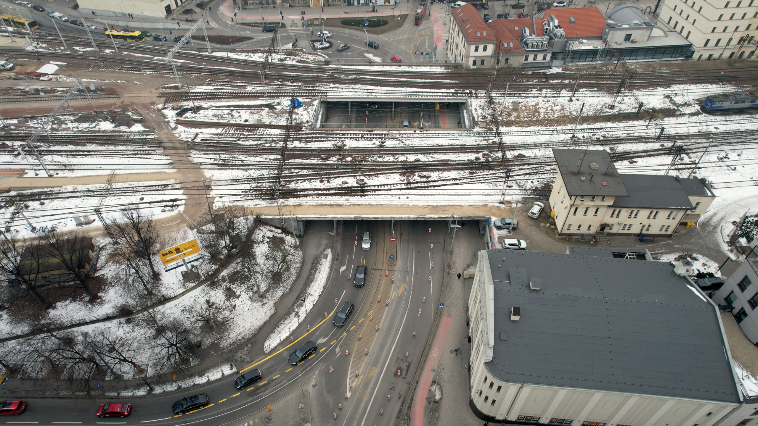 23 stycznia częściowo przywróciliśmy ruch samochodowy pod wiaduktem na ul. Mikołowskiej w Katowicach. Przejazd jest możliwy po dwóch pasach, jednokierunkowo, w stronę Placu Wolności i dworca kolejowego. Połowa wiaduktu jest już ukończona.