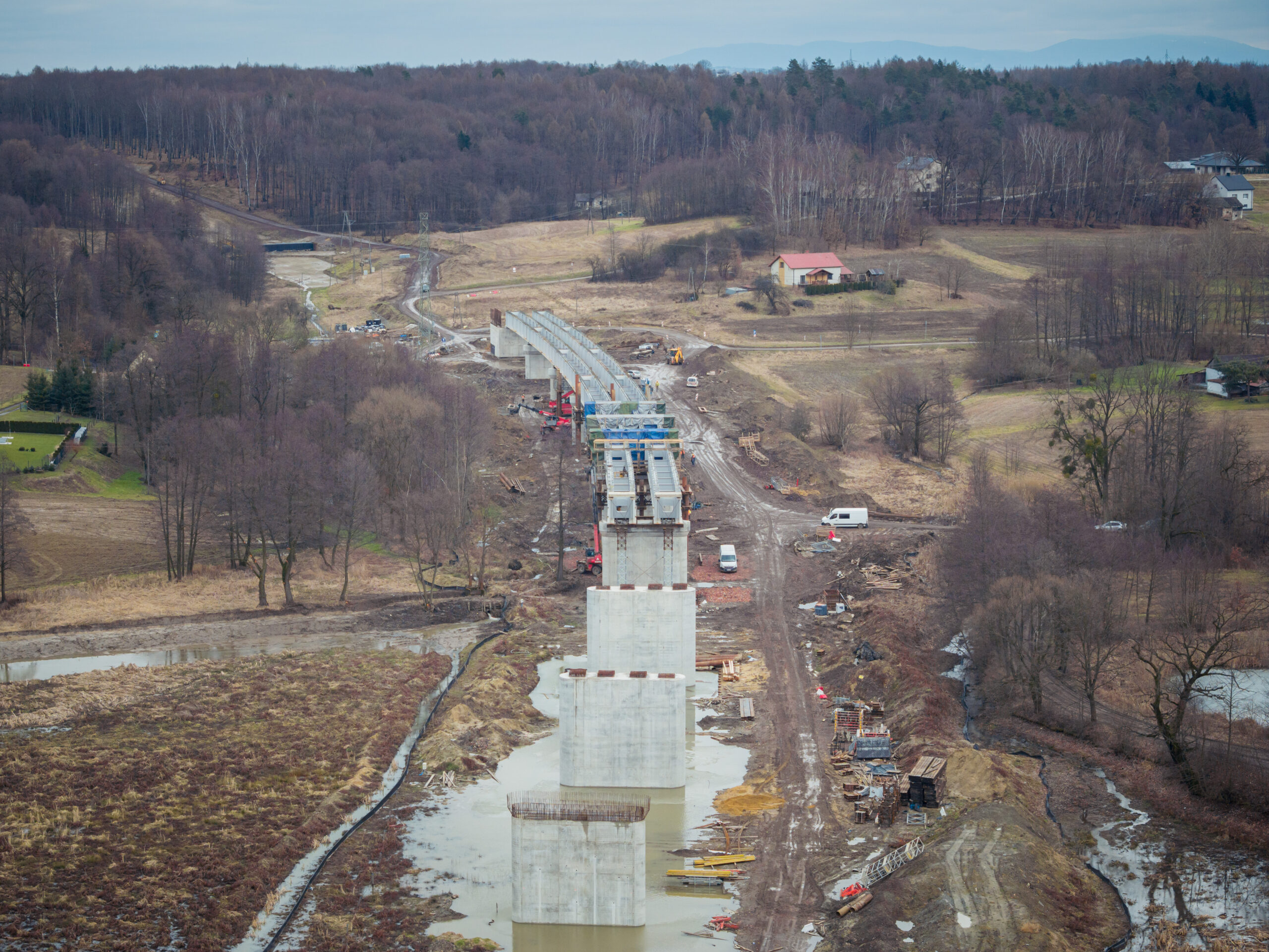 Marzec 2026: Budowa nowego, ponad 600-metrowego mostu w Zebrzydowicach