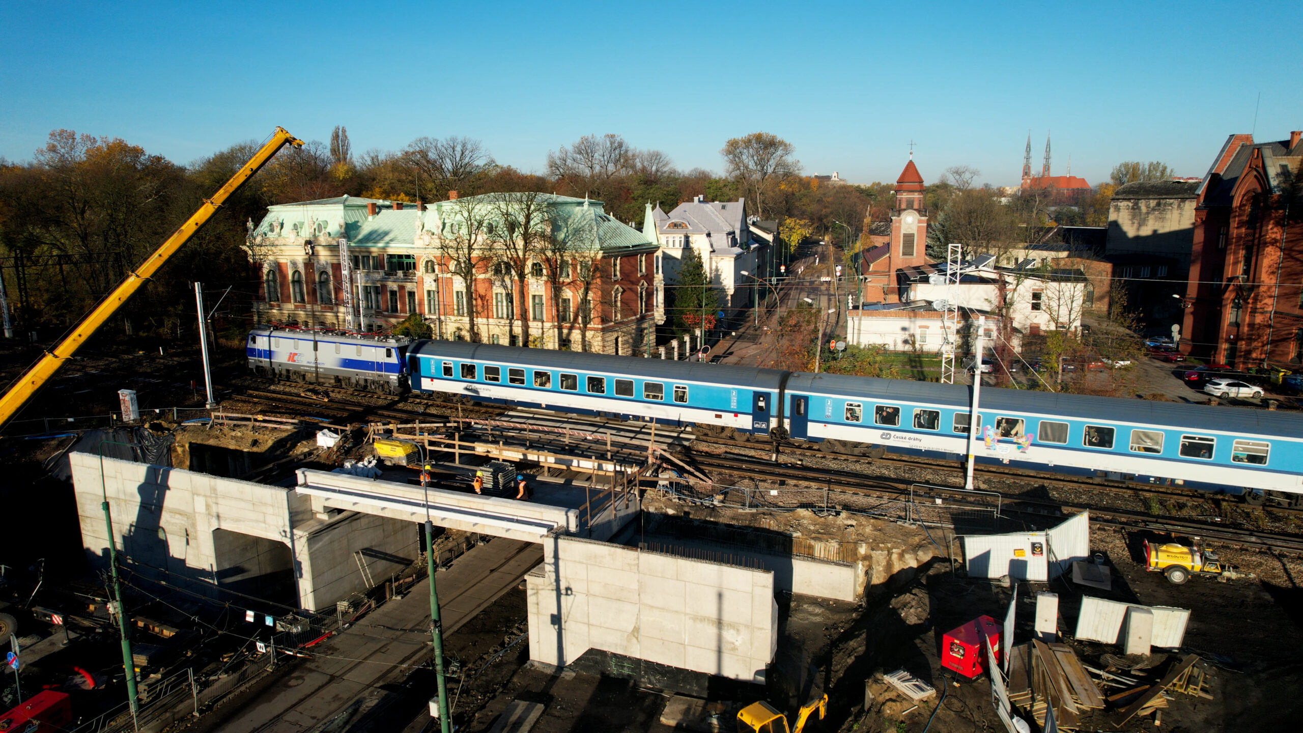 Wykonawca wybudował nowe przyczółki i zamontował stalowe belki przęsła wiaduktu kolejowego. Ten etap prac prowadzonych od 6 października, z uwagi na bezpieczeństwo mieszkańców, wymagał wstrzymania ruchu pod obiektem. Od dziś ulica znów jest dostępna dla mieszkańców, ale prace będą kontynuowane z zachowaniem bezpieczeństwa osób przemieszczających się pod wiaduktem. Od połowy listopada, na miesiąc, zostanie też przywrócony ruch drogowy. Całość robót w tym miejscu planujemy zakończyć w I kwartale 2027 r. W efekcie usprawni się komunikacja drogowa i tramwajowa, dzięki zwiększeniu szerokości jezdni. Poszerzony chodnik zyska miejsce pod ścieżkę rowerową.